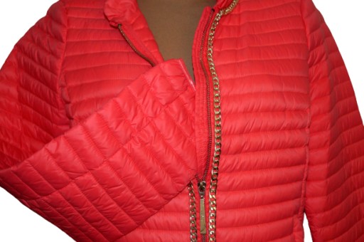 Zapinana na dwukierunkowy zamek, po bokach wpuszczane kieszenie na zamki. Ozdobiona złotym łańcuchem, metalowe elementy złote logowane.