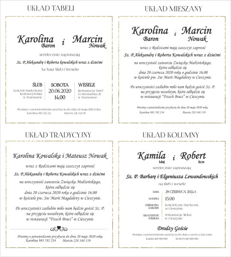 Poniżej przedstawiamy przykłady rozmieszczenia wybranej przez Państwa treści zaproszenia.