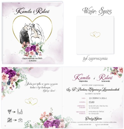 - możesz wybrać wszystkie parametry zaproszenia ( wzór przodu, wnętrza oraz tyłu)