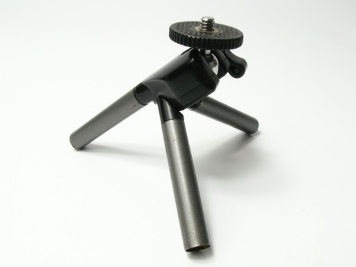Niewielki tripod z głowicą kulową - doskonały albo do wykorzystania do kamer otworkowych, lub ewentualnie także do... wystroju zbioru aparatów kolekcjonerskich. Jeśli posiadasz półkę ze starymi aparatami, to fajne podniesie on i wyeksponuje aparat stojący w drugim rzędzie przy okazji chroniąc spód aparatu przed porysowaniem.
