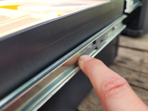 Jak wyjąć szufladę - Z obu stron trzeba trzymać haczyki do dołu (jak na zdjęciach). Wtedy będzie można wysunąć szufladę.