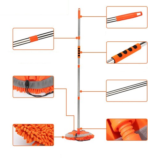 💦Bardzo długa szczotka do mycia samochodu o długości 157 cm z łatwością dotrze do dachu samochodu i innych wyższych miejsc. Głowica mopa z możliwością regulacji w zakresie 180 stopni zapewnia większą elastyczność podczas mycia samochodu i zapewnia łatwe wykonanie pełnego czyszczenia.