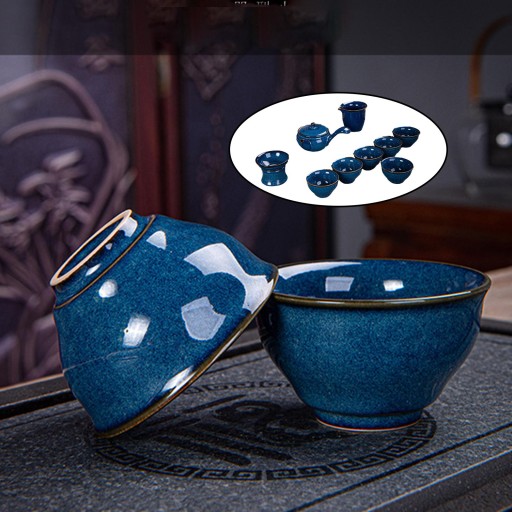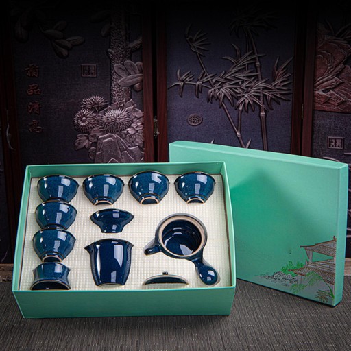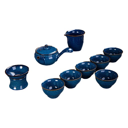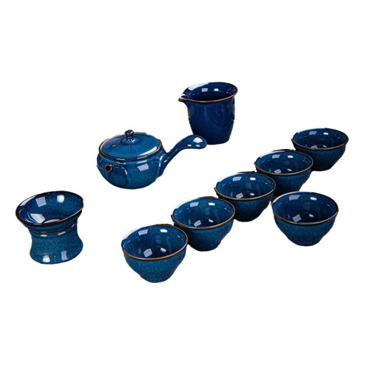 Ceramic Teapot Set With Side Handle 6 Cups Chinese Teapot Sets Blue