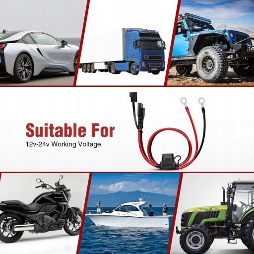- ★ SAE do zacisku pierścieniowego: SPT-2, 16AWG / 2C, długość: 2ft. Zaprojektowany z myślą o przedłużeniu zacisków do ładowania akumulatorów samochodowych lub motocyklowych, aby chronić baterię.