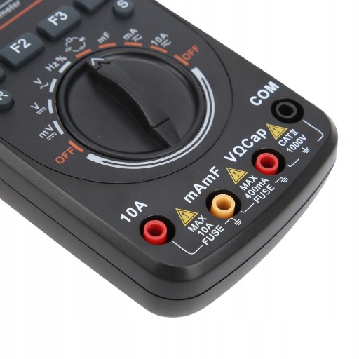 4. Funkcje multimetru obejmują napięcie/prąd DC/AC, rezystancję, pojemność, częstotliwość, cykl pracy, test diody/ciągłości.