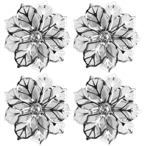 Cechy Kolor: srebrny Materiał: Stal nierdzewna Rozmiar: 5.00X4.00X4.00cm/1.97X1.57X1.57in Wydrążone pierścienie na serwetki kwiatowe, odpowiednie do codziennego użytku domowego i imprezowego, eleganckie i hojne, odpowiednie na różne okazje. Wykonany z wysokiej jakości stali nierdzewnej, ozdobiony błyszczącymi sztucznymi kryształkami, kwiatowy uchwyt na serwetki jest wytrzymały, lekki i trwały. Wysoki standard antykorozyjny i odporny na zarysowania, łatwy do utrzymania koloru i połysku przez długi czas; po użyciu wystarczy delikatnie wyczyścić i wytrzeć miękką ściereczką do następnego użycia. Może być używany na różne okazje, takie jak dom, biuro, hotele, restauracje, bary, kawiarnie, sklepy itp. Przyjęcie prostej i wygodnej konstrukcji, ten produkt może być również używany przez długi czas.