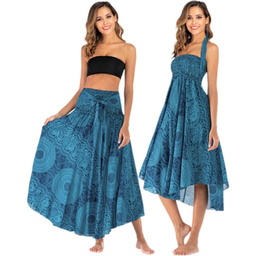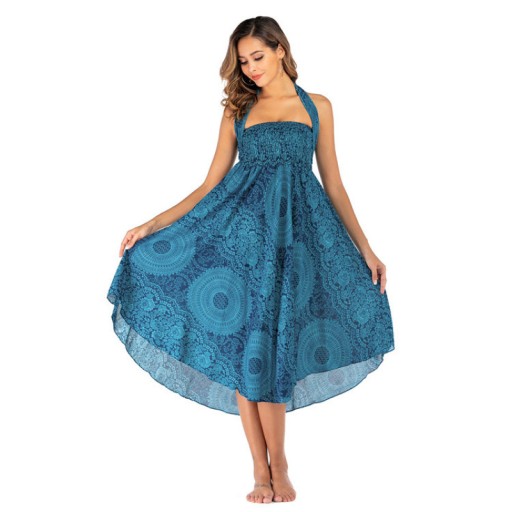 ✅Letnia spódnica Beach Boho Dress Elastyczna wysoka talia Casual Plus Size Spódnica Sznurowana sukienka z etnicznym nadrukiem