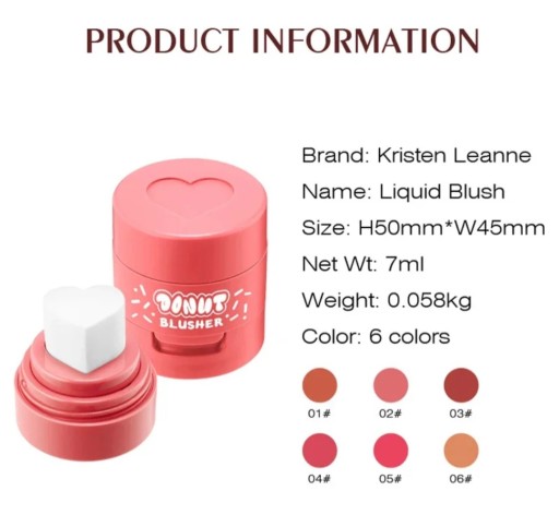 Róż do policzków stempel w kształcie serca marki Kristen Leanne. Pojemność 7ml. Można używać również do ust oraz powiek. Daje piękny, naturalny efekt. Łatwy w użyciu.