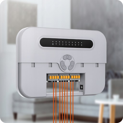 Dzięki łączności bezprzewodowej i wygodnej aplikacji możesz sterować otwarciem zaworów z dowolnego miejsca na świecie, ustawić ich harmonogram pracy zależny od pory dnia czy prognozy pogody.