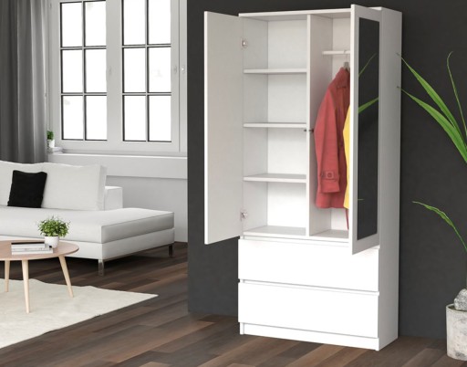 Szafa SS-90 z lustrami to praktyczny mebel, który znajdzie swoje miejsce zarówno w sypialni, gdzie posiadamy garderoby, ale również w biurze czy pracowni, gdzie dokumenty musza mieć swoje miejsce oraz można schować ubranie wierzchnie. Cechy charakterystyczne tego produktu to przede wszystkim solidne wykonanie oraz nowoczesny wygląd. Boki szafki są jednolite bez otworów na zewnątrz, podnosi to estetykę produktu.