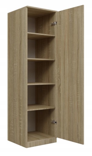 MATERIAŁ: Korpus i fronty – płyta wiórowa laminowana o grubości 16 mm. Obrzeża – wykończone tworzywem ABS (charakteryzującym się dużą wytrzymałością mechaniczną i chemiczną) WYMIARY: Głębokość: 50 cm Szerokość: 50 cm Wysokość: 180 cm WYMIARY SZCZEGÓŁOWE: Front drzwi: Szerokość: 49,5 cm Wysokość: 172 cm Cokół: Wysokość: 6 cm Półka górna: Głębokość: 48 cm Szerokość: 46,5 cm Pozostałe półki: Głębokość: 46,5 cm Szerokość: 46,5 cm Wysokość między półkami: 33 cm TIP-ON drzwi bez uchwytów można otworzyć bez trudu poprzez lekkie naciśnięcie. Drzwi uchylają się do pozycji wygodnej dla użytkownika do dalszego otwarcia. By je zamknąć wystarczy lekko docisnąć front. Użytkowanie: Powierzchnię mebla czyścić przy pomocy miękkiej szmatki. Unikać stosowania silnie działających środków chemicznych. W opakowaniu: Instrukcja montażu wraz ze wszystkimi potrzebnymi akcesoriami montażowymi. Meble są fabrycznie zapakowane do samodzielnego montażu. Pozostałe szczegółowe wymiary znajdują się poniżej w zakładce "Pliki" w postaci arkusza kalkulacyjnego.