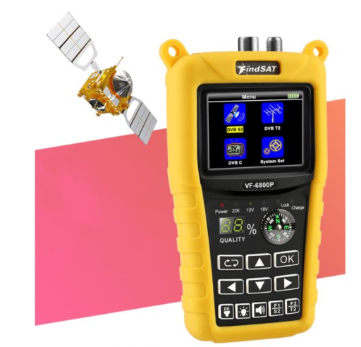 VF-6800 DVB-T2 DVB-S2 DVB-C Wizjer satelitarny 2000mA Akumulator MPEG4 Siedzący VF-6800P Findsa LCD DVB Cyfrowy Satfinder HD 1. Kolorowy ekran TFT LCD 2. W pełni kompatybilny z DVB-S/DVB-S2, DVB-T/T2, DVB-C/C2, kompatybilny z MPEG2/MPEG4 3. Obsługuje funkcję widma; 4. Zestaw silnika nośnego i sterowania silnikiem anteny nośnej 5. Języki OSD: angielski 6. Obsługa 10 rodzajów wyboru koloru interfejsu OSD; 7. Obsługa tonu DISEQC1.0/1,1/1,2,0/22 khz; 8. Treść testu; Siła sygnału. Jakość. BER, PWR.SNR.MER.ETC. 9. Zabezpieczenie i wskaźnik przeciwzwarciowy LNB 10. Obsługuje ładowanie niskonapięciowe, może automatycznie wybudzić baterię ze snu. 11. Alarm dźwiękowy wskazuje poziom siły sygnału 12. Włączone Dźwiękowe powiadomienie o zablokowaniu sygnału 13. Zasilanie: 12v.1A 14. Ładowarka samochodowa 15.7.4V / 2000mah szybkie ładowanie baterii litowo-jonowej. Tryb bardzo długiego uśpienia. Niskie zużycie energii 16. Z oświetleniem LED o wysokiej jasności 17. Z podświetlanymi klawiszami (włącz/wyłącz) 18. Z kompasem i wyłącznikiem zasilania 19. Edytuj transponder: edytuj, dodawaj i usuwaj 20. Aktualizacja oprogramowania przez Micro USB