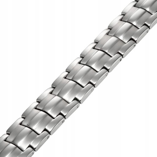 ORYGINALNA BRANSOLETKA MAGNETYCZNA ZDROWIE I ELEGANCJA Kolor : Srebrny połysk z srebrnym matowym paskiem Długość 21,5 cm Szerokość: 12 mm Grubość: 4 mm Materiał: Stal chirurgiczna 316L Metal hipoalergiczny: Tak Typ zapięcia: Zatrzask