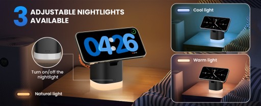✅ 【REGULOWANE PODŚWIETLENIE NOCNE】 Przenośna ładowarka do Apple Watch JoyGeek z funkcją oświetlenia nocnego jest dostępna z trzema opcjami oświetlenia, w tym ciepłą bielą i prawdziwą bielą, idealną do sypialni. Bardzo wygodny do nocnych zajęć.