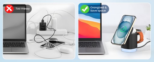 ✅【Bezprzewodowa stacja ładująca 3 w 1】 Stacja ładująca JoyGeek GD305 dla wielu urządzeń może ładować iPhone'a, AirPods i iWatch w tym samym czasie, pomagając zachować porządek i porządek. Pożegnaj niedogodności związane z noszeniem wielu ładowarek i kabli do transmisji danych.