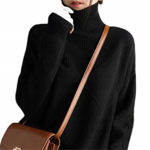 100%czystej wełny luźno dopasowany sweter z golfem Linia plus size (duże rozmiary)