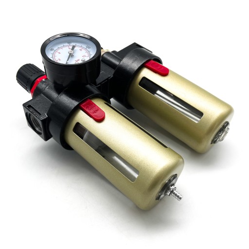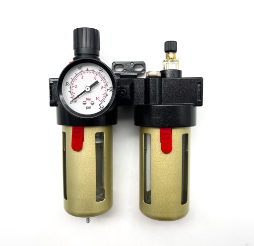 Montowany w systemie pneumatycznym pomiędzy kompresorem a narzędziem pneumatycznym, filtruje powietrze z kurzu, oleju i brudu dzięki sile odśrodkowej oraz elementowi filtrującemu. Lubrykator z regulacją podawania oleju zapewnia właściwą konserwację narzędzi pneumatycznych. Filtr wykonany jest z metalu spienionego, co gwarantuje skuteczne oczyszczanie powietrza. Metalowa osłona butli zabezpiecza przed uszkodzeniami mechanicznymi, a automatyczny drenaż ułatwia utrzymanie sprawnego działania całego systemu.