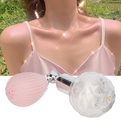 2. Łatwy w użyciu: Podobnie jak w przypadku perfum w sprayu, wystarczy nacisnąć worek gazowy, aby posypać policzki i ciao poyskującym pudrem brokatowym.