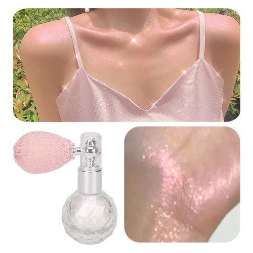 1. Piękny i wykwintny: rozświetlający puder w sprayu do stosowania na twarz, aby uzyskać promienną i pewniejszą twarz.
