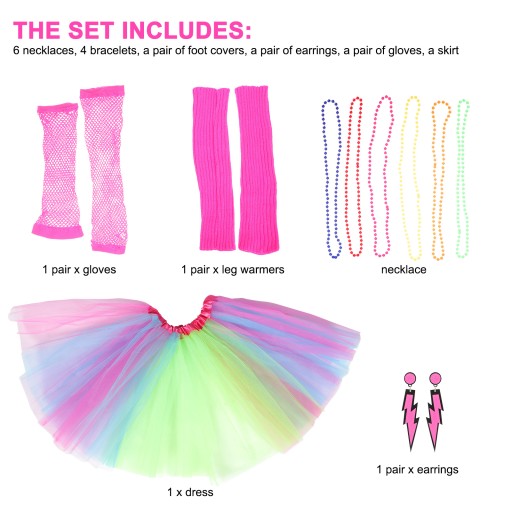 ✅Ten zestaw akcesoriów do kostiumów z lat 80. jest wykonany z materiału poliestrowego, co zapewnia bezpieczne i długotrwałe użytkowanie. Konstrukcja w stylu retro z wygodną fakturą zapewni jej praktyczność i popularność jako kostiumy na imprezy lub imprezy cosplay. Mogą sprawić, że staniesz się bardziej przyciągający wzrok i pomogą Ci przyciągnąć więcej uwagi.