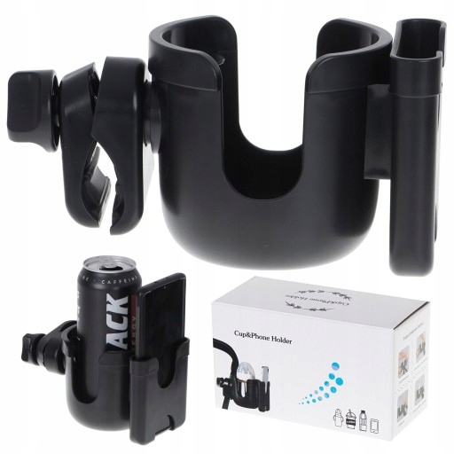 Uchwyt pasje do większości wózków oraz pomieści wszystkie rodzaje telefonów i pojemników na napoje: butelki, bidony, termosy, kubki - wszystko będzie doskonale pasować!