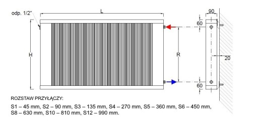 poprzez intensywne, szerokokątne promieniowanie cieplne z przedniej pofalowanej powierzchni grzejnika