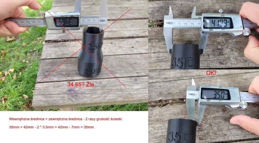 Gdybyście szukali adapteru do urządzeń, których nie ma w mojej ofercie (a wolelibyście mieć dopasowany adapter i nie kombinować) skontaktujcie się ze mną i podajcie model w taki sposób "potrzebuję adapterów do: 1. Makita DVC750L, który ma rurę 37.5mm wewnątrz i 42 mm na zewnątrz 2. rury Shopvac, która ma 36 mm na zewnątrz i 32 mm wewnątrz". Najlepiej jeżeli wymiary zmierzycie suwmiarką (tak jak jest to pokazane na zdjęciu). Tanią suwmiarkę można kupić za ok 50 zł.