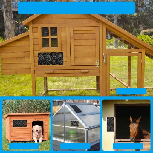 ☀️ Ochrona bezpieczeństwa: Stopień wodoodporności IP67, zapobiegający zwarciu lub uszkodzeniu przez deszcz. Podwójne wentylatory posiadają metalową siatkę ochronną, która nie tylko zapobiega zranieniu zwierząt, ale także chroni normalną pracę liści wentylatora i wydłuża żywotność wentylatorów.