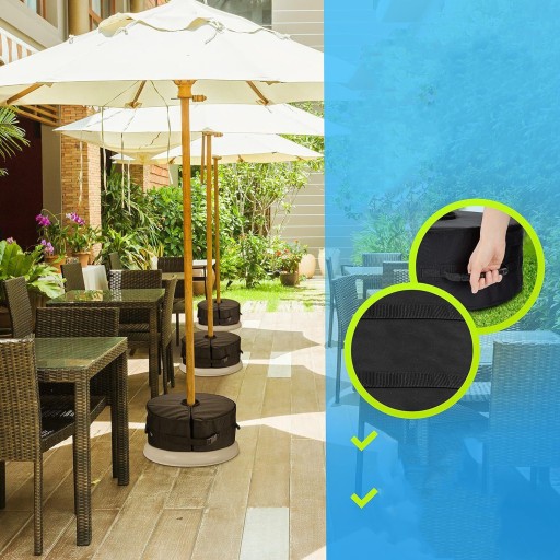 ✅ Bezpieczeństwo i zaufanie - Wytrzymała torba na parasol o maksymalnej pojemności 25 kg (piasek nie wchodzi w skład zestawu), którą można owinąć wokół dowolnego stojaka na parasole i już nigdy nie martwić się, że parasol odleci. Worek z piaskiem został zaprojektowany głównie w celu dodania dodatkowej wagi do istniejącego stojaka na parasole. Nie zalecamy owijania go bezpośrednio wokół masztu parasola.