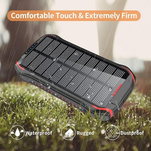 - Wodoodporna konstrukcja IP66 i konstrukcja zewnętrzna: zewnętrzny powerbank solarny ma funkcję wodoodporności IP66, solidną podwójną obudowę, dwustronną konstrukcję antypoślizgową, nadaje się do zajęć na świeżym powietrzu, takich jak wędrówki, wycieczki kempingowe itp. Ciesz się wycieczką na świeżym powietrzu