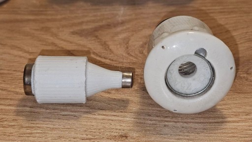 Gwinty mosiężne/ mosiężne pobielane, masywne. Obudowa porcelanowa.