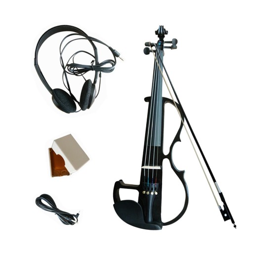 Ciche skrzypce elektryczne z osprzętem z litego drewna dla dzieci i dorosłych, czarne