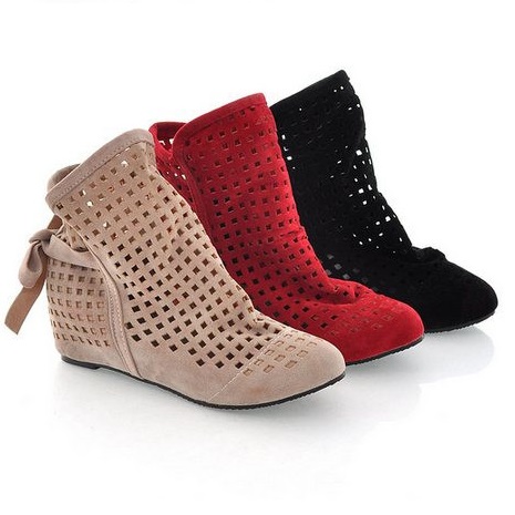 Botki gladiatorki z ażurowym wykończeniem, wsuwane, z tyłu wiązana kokarda. Buty dzięki dziurkom są bardzo przewiewne, więc są również idealne na lato do szortów.