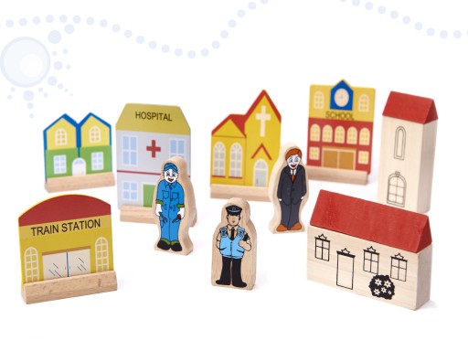 Drewniana kolejka dla różnych pojazdów z wieloma akcesoriami. Można ustawiać elementy w dowolny sposób. Zabawa uczy kreatywności, logicznego myślenia i zasad ruchu drogowego. W każdym elemencie zadbano o najdrobniejsze szczegóły. Wymiary: 110x66x20cm.