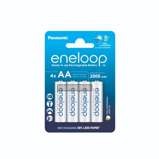 Wybierając eneloop zmniejszasz swoje zużycie plastiku: Wszystkie opakowania eneloop są wykonane w 100% z papieru pozyskanego z odpowiedzialnych źródeł