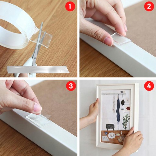 Taśma szybka i prosta w użyciu Taśmy wielokrotnego użytku opracowane w technologii NANO, cechują się niezwykle silnymi właściwościami przyczepnymi. Dzięki zastosowanej technologii NANO, te taśmy można wielokrotnie używać, przyklejając i odklejając je kilkukrotnie, zachowując jednocześnie swoją doskonałą przyczepność. Są one przeznaczone do użytku na wszelkich gładkich i nieporowatych powierzchniach.