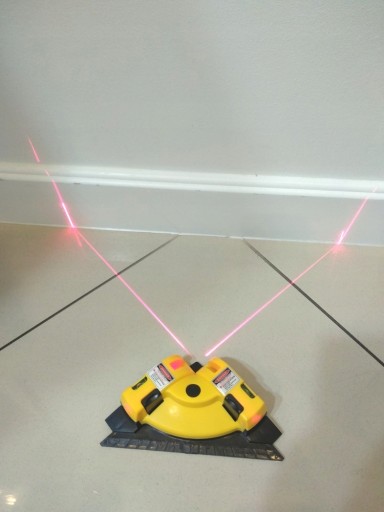 Kątomierz laserowy jest doskonałym narzędziem do wyznaczania linii przy układaniu płytek na dużych powierzchniach i w wielu pomieszczeniach bez progów.