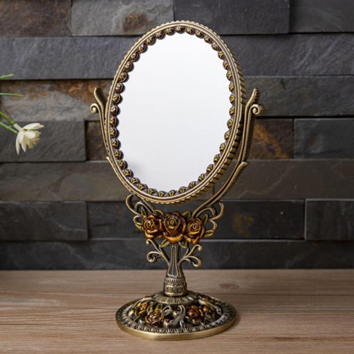 Owalne lusterko kosmetyczne Stojak na biurko Lustro Obrót o 360 stopni Dwustronny brąz