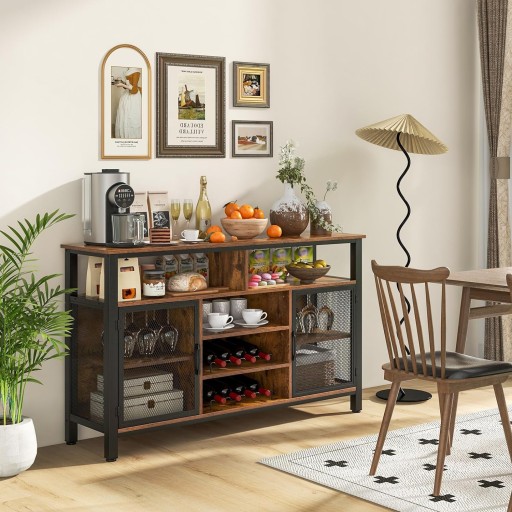wykończenie ze sterownika drewna i prosta czarna metalowa rama styl przemysłowy w stylu vintage, metalowe drzwi z siecią dodatek wyjątkowego uroku szafce bufetowej. Szafka pojemnik może być w kuchni, jadalni, barze.