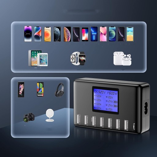 ЗАРЯДНОЕ УСТРОЙСТВО USB 8-ПОРТОВАЯ ЗАРЯДНАЯ СТАНЦИЯ 12А С ЖК-ДИСПЛЕЕМ