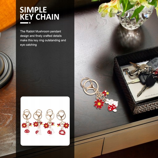 Cechy Kolor: różne kolory Materiał: stop Rozmiar: około 9.00X2.00X0.20cm/3.54X0.79X0.08in Projekt jest wyjątkowy, kreatywny i interesujący, a efekt dekoracji jest dobry, co może przynieść ci jasny nastrój. Przenośny rozmiar, lekki, kompaktowy i piękny, bardzo trwały i niełatwy do uszkodzenia. Wisiorek Rabbit Mushroom i misternie wykonane detale sprawiają, że ten breloczek jest wyjątkowy i przyciąga wzrok. Doskonale chroni klucz przed zgubieniem. Zbudowany z cienkiego materiału, trwały i praktyczny. Rozsądny projekt, wyjątkowa kreatywność, sprawiają, że twój pojedynczy produkt jest bardziej modny.