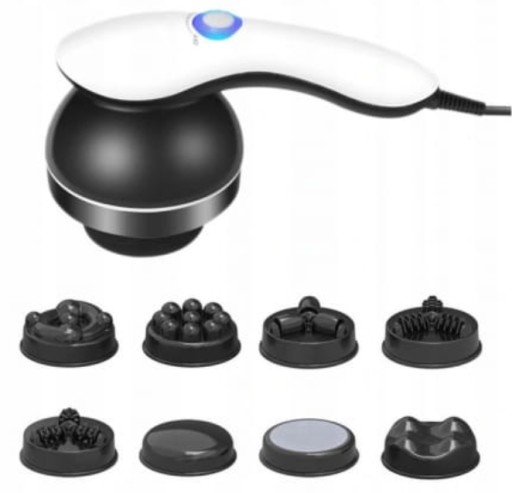 ➡️ W skład zestawu wchodzi aż 8 wymiennych nakładek, które gwarantują różnorodność i precyzję w masażu.