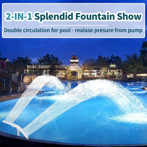 - Zintegrowane 2 fontanny zainstalowane do powrotu 1 strumienia, uwolnienie mocy pompy do strumienia wody, szeroki opryskiwacz pokrywa cały basen, aby zwiększyć cyrkulację basenu i schłodzić temperaturę znacznie szybciej niż pojedyncza dysza.