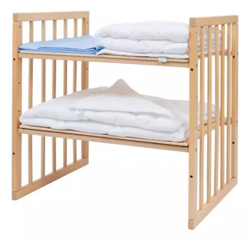 Po skręceniu ze sobą dwóch dostawek powstanie wygodne, małe łóżeczko.