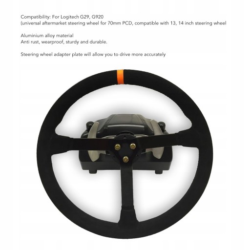 Kompatybilność: dla Logitech G29, G920 (uniwersalna kierownica na rynku wtórnym do 70mm PCD, kompatybilna z kierownicą 13, 14 cali)