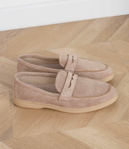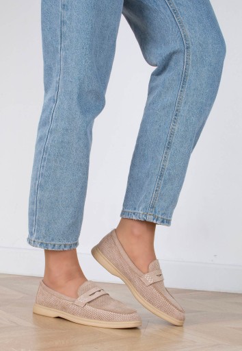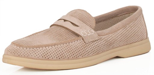 8032 BEŻOWE MOKASYNY PÓŁBUTY ZAMSZOWE DAMSKIE 39