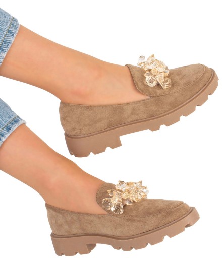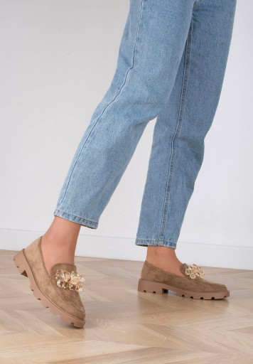 8033 BEŻOWE MOKASYNY PÓŁBUTY ZAMSZOWE DAMSKIE 38