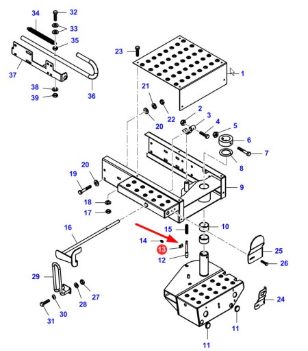 Oryginalny kołek sprężysty drabinki o wymiarach 4 x 30 mm i numerze katalogowym LA14164370, stosowany w kombajnach zbożowych marek Massey Ferguson, Fendt, Challenger.