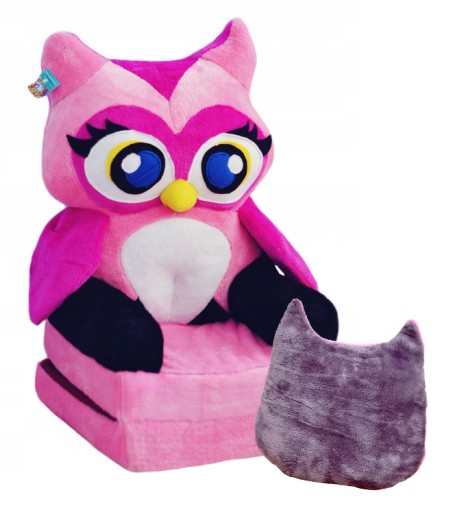 Pluszowy rozkładany fotelik dla dziecka * SOWA RÓŻOWA * Fotel dziecięcy z materacykiem