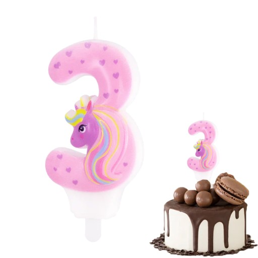 ŚWIECZKA URODZINOWA JEDNOROŻEC CYFERKA 3 RÓŻOWA NA IMPREZĘ URODZINOWĄ